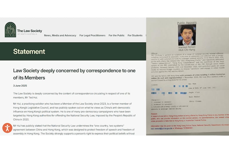 针对许智峯跨境镇压引发澳法律界关注 南澳律师协会发声明谴责