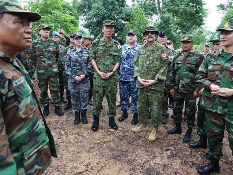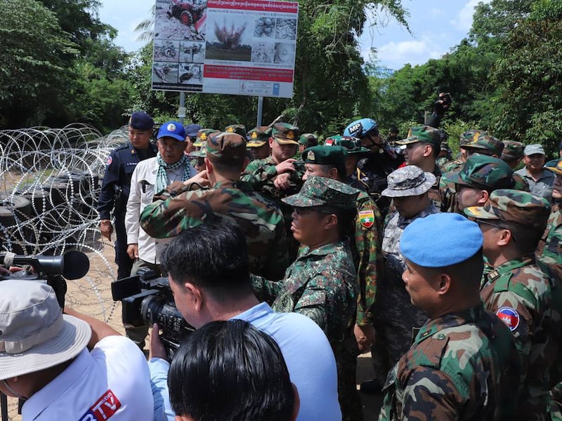 មន្ត្រីយោធាបណ្ដាប្រទេសអាស៊ាន ចុះពិនិត្យទីតាំងក្រុមយោធាថៃ ដាក់រាយបន្លាលួសនិងកង់ឡានរំលោភចូលភូមិឋានពលរដ្ឋខ្មែរ។